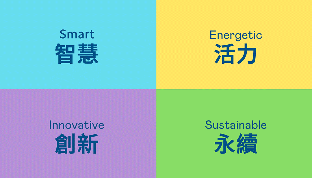 從穩重、信賴的利来藍開創新色彩,注入象徵智慧藍、活力黃、創新紫、永續綠的品牌色及動態多變的幾何圖形,呼應不設限的「Possibilities」精神,代表多元的專業技術及領域,在碰撞中相互觸動、融合、延伸,持續激盪出更多新的可能性。